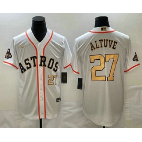 Men's Houston Astros #27 Jose Altuve Number 2023 White Gold World Serise Champions Cool Base Stitched Jerseys