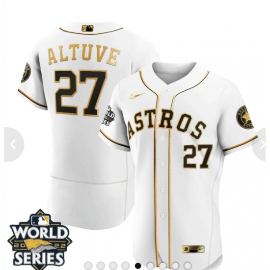 Men's Houston Astros #27 Jose Altuve White 2022 World Series Flex Base Stitched Baseball Jersey