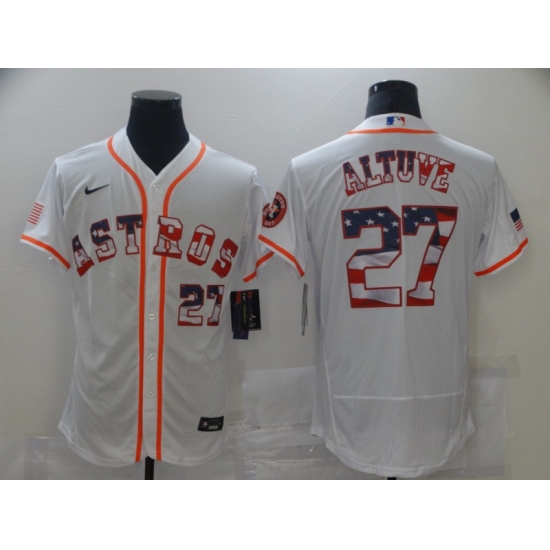 Men's Houston Astros #27 Jose Altuve White 2020 Stars & Stripes 4th of July Jersey