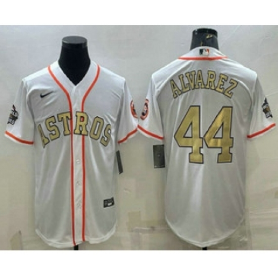 Men's Houston Astros #44 Yordan Alvarez White Gold 2022 World Series Champions Stitched Cool Base Nike Jersey