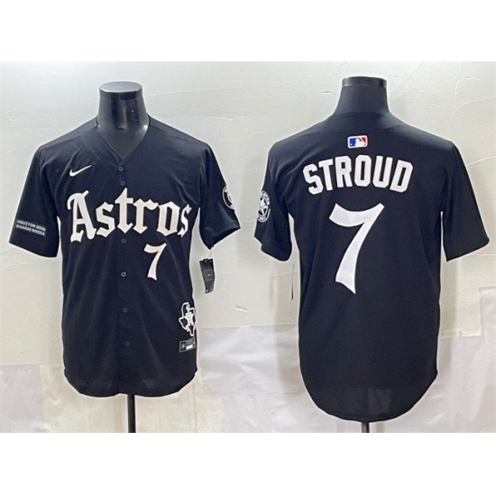>Men's Houston Astros #7 C.J. Stroud Black Gothic 'Houston Born Barrio Raised' Limited Stitched Baseball Jersey
