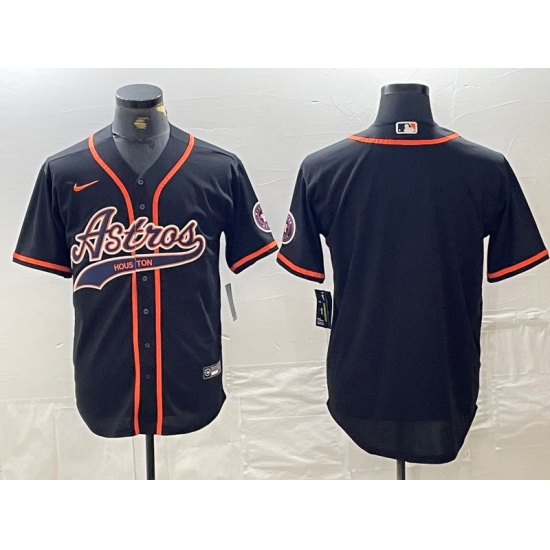 >Men's Houston Astros Blank Black With Cool Base Stitched Baseball Jersey