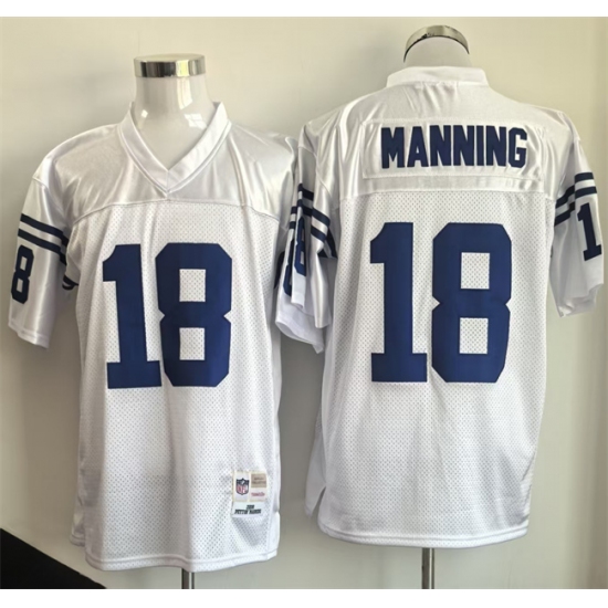 Men's Indianapolis Colts #18 Peyton Manning White Throwback Stitched Football Jersey