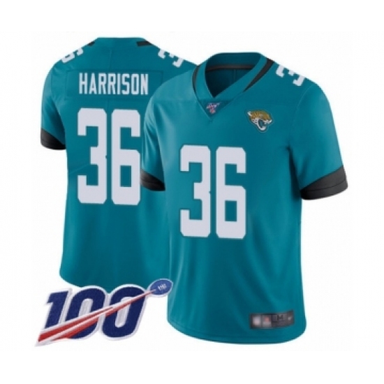 Men's Jacksonville Jaguars #36 Ronnie Harrison Teal Green Alternate Vapor Untouchable Limited Player 100th Season Football Jersey