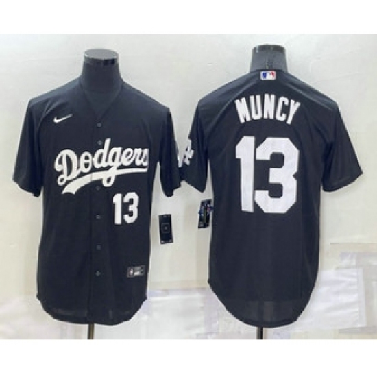 Men's Los Angeles Dodgers #13 Max Muncy Number Black Cool Base Stitched Baseball Jersey