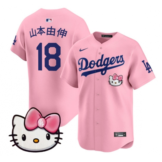 >Men's Los Angeles Dodgers #18 山本由伸 Pink 2025 Hello Kitty Vapor Limited Stitched Baseball Jersey