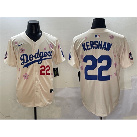 Men's Los Angeles Dodgers #22 Clayton Kershaw Cream 2025 Tokyo Series Limited Stitched Baseball Jersey