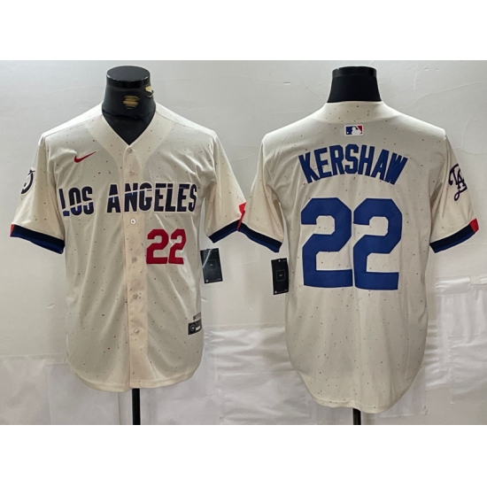 Men's Los Angeles Dodgers #22 Clayton Kershaw Number Cream 2024 City Connect Limited Stitched Jersey