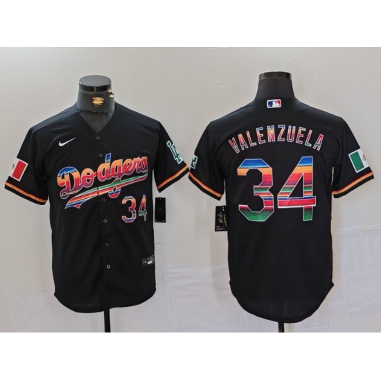 Men's Los Angeles Dodgers #34 Fernando Valenzuela Black Rainbow Mexico Cool Base Stitched Jersey
