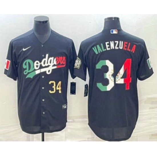 Mens Los Angeles Dodgers #34 Fernando Valenzuela Number Mexico Black Cool Base Stitched Baseball Jersey
