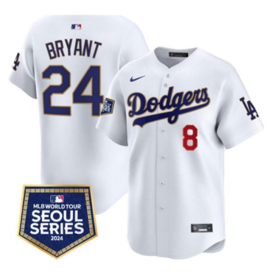 Men's Los Angeles Dodgers Front #8 Back #24 Kobe Bryant White 2024 World Tour Seoul Series Home Limited Stitched Baseball Jersey