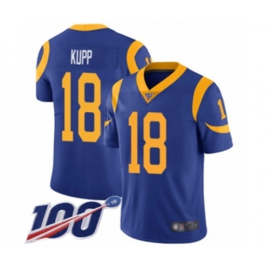 Men's Los Angeles Rams #18 Cooper Kupp Royal Blue Alternate Vapor Untouchable Limited Player 100th Season Football Jersey