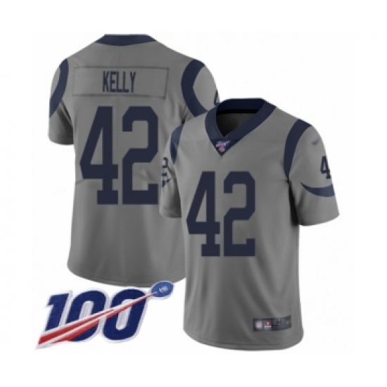 >Men's Los Angeles Rams #42 John Kelly Limited Gray Inverted Legend 100th Season Football Jersey