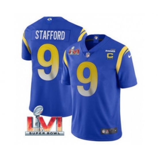 Men's Los Angeles Rams #9 Matthew Stafford 2022 Royal With C Patch Super Bowl LVI Vapor Limited Jersey