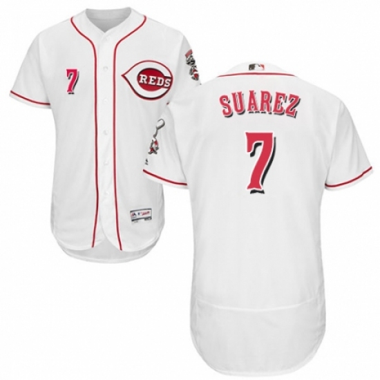 Men's Majestic Cincinnati Reds #7 Eugenio Suarez White Home Flex Base Authentic Collection MLB Jersey