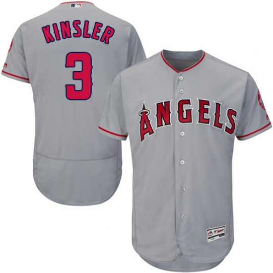 Men's Majestic Los Angeles Angels of Anaheim #3 Ian Kinsler Grey Road Flex Base Authentic Collection MLB Jersey