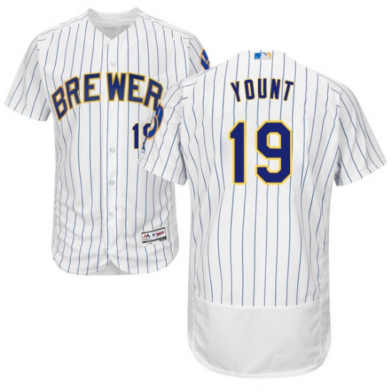 Men's Majestic Milwaukee Brewers #19 Robin Yount White Home Flex Base Authentic Collection MLB Jersey