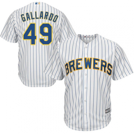 Home>MLB>Milwaukee Brewers>Yovani Gallardo>Men's Majestic Milwaukee Brewers #49 Yovani Gallardo Replica White Alternate Cool Base MLB Jersey