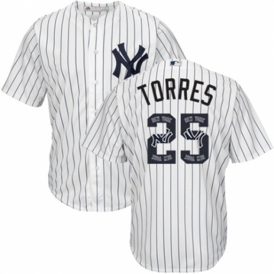 Men's Majestic New York Yankees #25 Gleyber Torres Authentic White Team Logo Fashion MLB Jersey