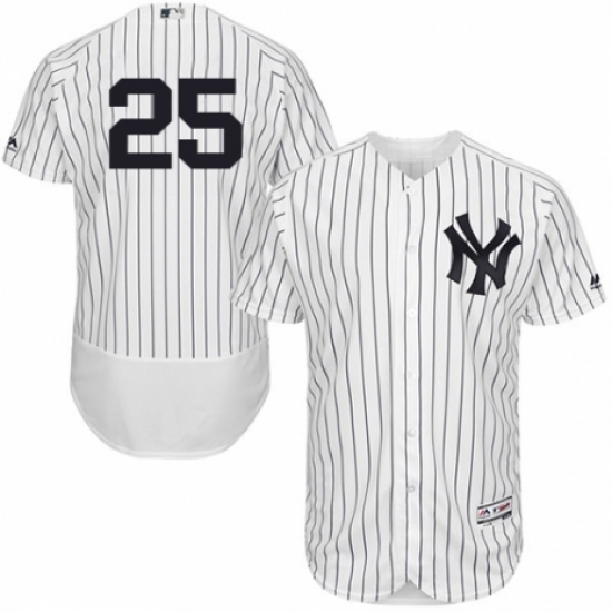 >Men's Majestic New York Yankees #25 Gleyber Torres White Home Flex Base Authentic Collection MLB Jersey
