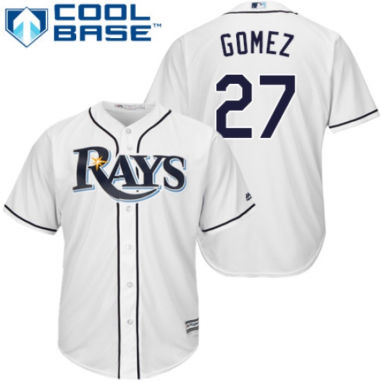 Home>MLB>Tampa Bay Rays>Carlos Gomez>Men's Majestic Tampa Bay Rays #27 Carlos Gomez Replica White Home Cool Base MLB Jersey