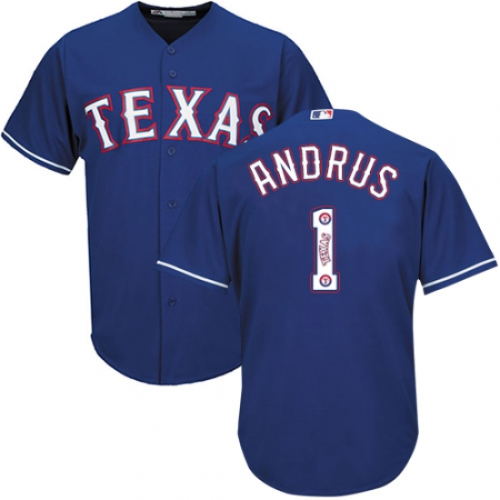 Men's Majestic Texas Rangers #1 Elvis Andrus Authentic Royal Blue Team Logo Fashion Cool Base MLB Jersey
