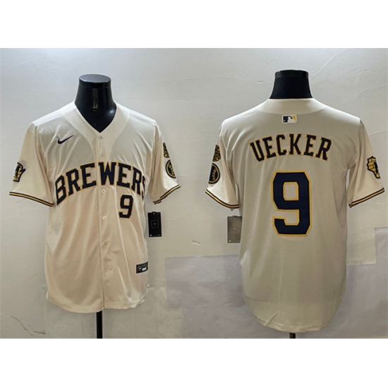 >Men's Milwaukee Brewers #9 Bob Uecker Cream With Home Limited Stitched Baseball Jersey