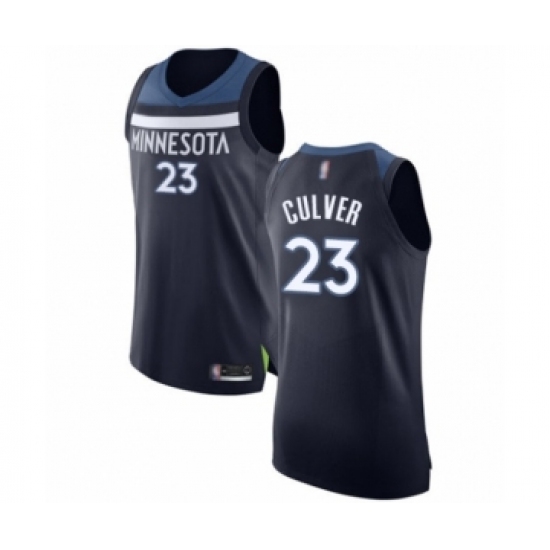 >Men's Minnesota Timberwolves #23 Jarrett Culver Authentic Navy Blue Basketball Jersey - Icon Edition