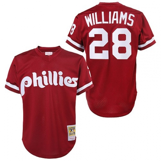 Men's Mitchell and Ness 1991 Philadelphia Phillies #28 Mitch Williams Replica Red Throwback MLB Jersey