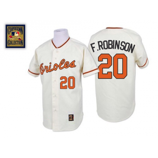 Men's Mitchell and Ness Baltimore Orioles #20 Frank Robinson Replica White Throwback MLB Jersey