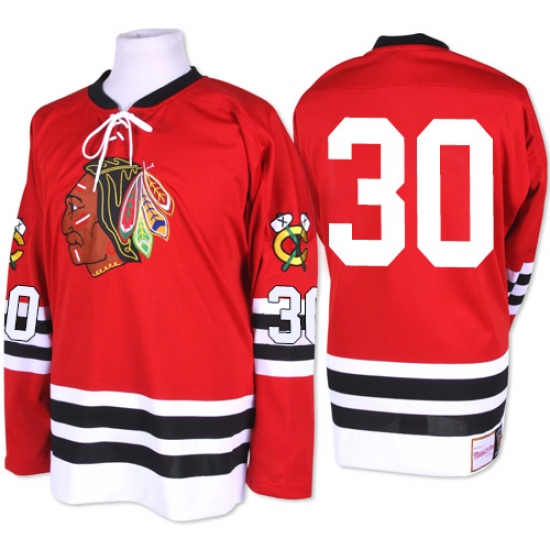 Men's Mitchell and Ness Chicago Blackhawks #30 ED Belfour Premier Red 1960-61 Throwback NHL Jersey