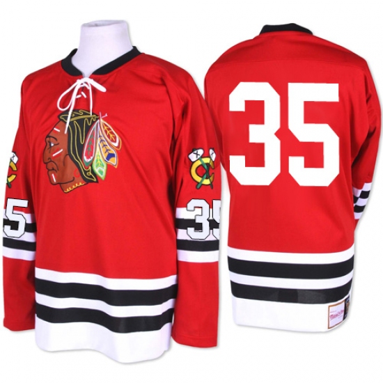 Men's Mitchell and Ness Chicago Blackhawks #35 Tony Esposito Authentic Red 1960-61 Throwback NHL Jersey
