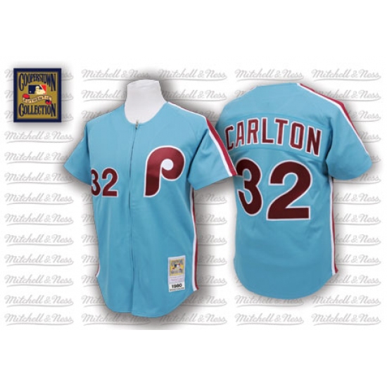 Men's Mitchell and Ness Philadelphia Phillies #32 Steve Carlton Replica Blue Throwback MLB Jersey