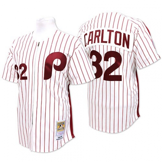 Men's Mitchell and Ness Philadelphia Phillies #32 Steve Carlton Replica White/Red Strip Throwback MLB Jersey