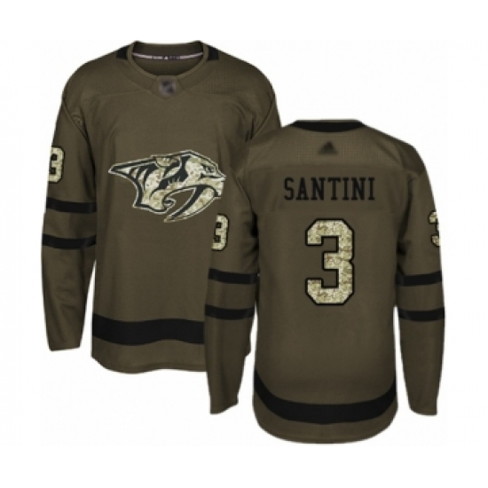 Men's Nashville Predators #3 Steven Santini Authentic Green Salute to Service Hockey Jersey