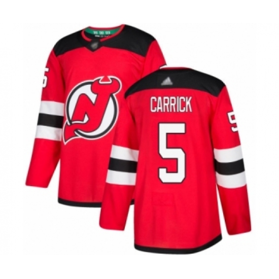 >Men's New Jersey Devils #5 Connor Carrick Authentic Red Home Hockey Jersey