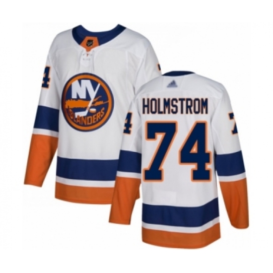>Men's New York Islanders #74 Simon Holmstrom Authentic White Away Hockey Jersey