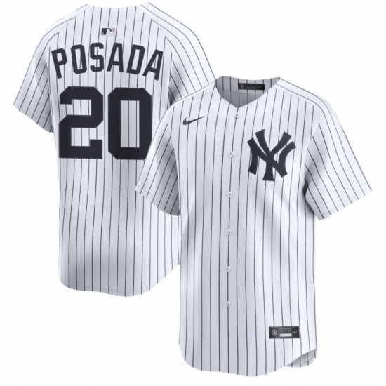 Men's New York Yankees #20 Jorge Posada White No Name Stitched MLB Flex Base Nike Jersey