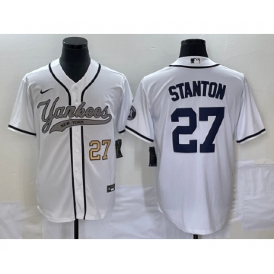 Men's New York Yankees #27 Giancarlo Stanton Number White Cool Base Stitched Baseball Jersey