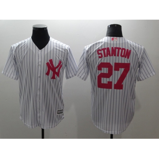 >Men's New York Yankees #27 Giancarlo Stanton White Home Stitched Baseball Jersey