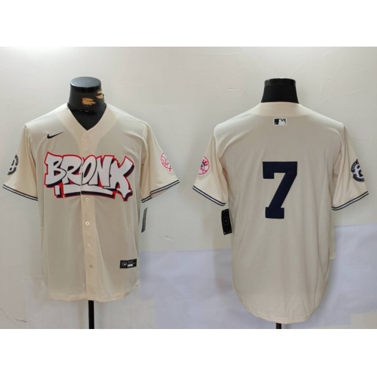 >Men's New York Yankees #7 Mickey Mantle Cream Limited Stitched Baseball Jersey