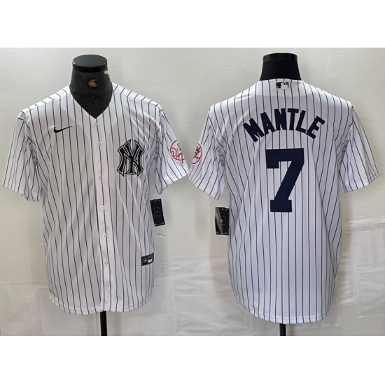 Men's New York Yankees #7 Mickey Mantle Name White With 2024 Cool Base Stitched Jersey
