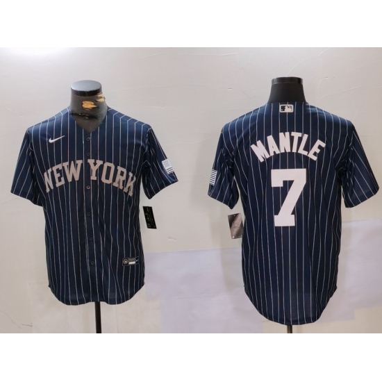 Men's New York Yankees #7 Mickey Mantle Navy Pinstripe Fashion Cool Base Jersey