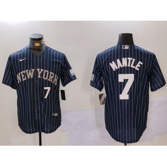 Men's New York Yankees #7 Mickey Mantle Navy Pinstripe Fashion Cool Base Jerseys
