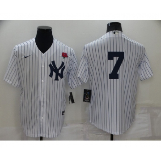 Men's New York Yankees #7 Mickey Mantle White No Name Stitched Rose Nike Cool Base Throwback Jersey