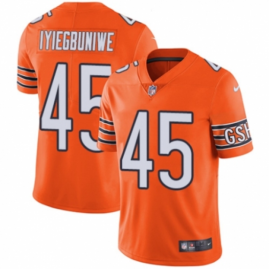 >Men's Nike Chicago Bears #45 Joel Iyiegbuniwe Limited Orange Rush Vapor Untouchable NFL Jersey