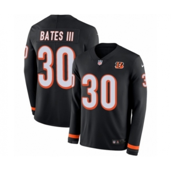 >Men's Nike Cincinnati Bengals #30 Jessie Bates III Limited Black Therma Long Sleeve NFL Jersey