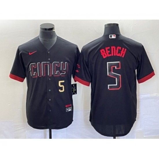Men's Nike Cincinnati Reds #5 Johnny Bench Number Black 2023 City Connect Cool Base Stitched Baseball Jersey1