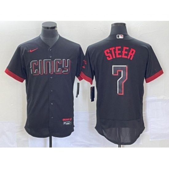 Men's Nike Cincinnati Reds #7 Spencer Steer Black 2023 City Connect Cool Base Stitched Baseball Jersey 1
