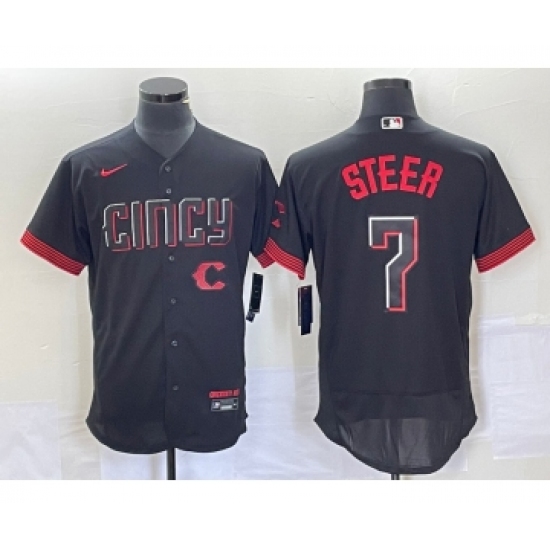 >Men's Nike Cincinnati Reds Spencer Steer Black 2023 City Connect Flex Base Stitched Jersey